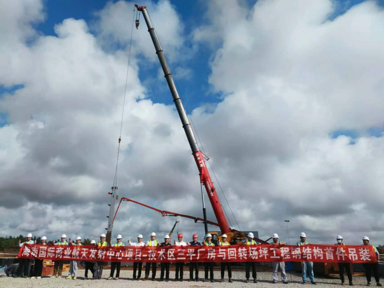 2月2日上午9点58分,海南商业航天发射场技术区三平厂房项目完成钢结构首吊,标志着项目正式进入钢结构施工阶段。各参建单位相关负责人出席首吊仪式。